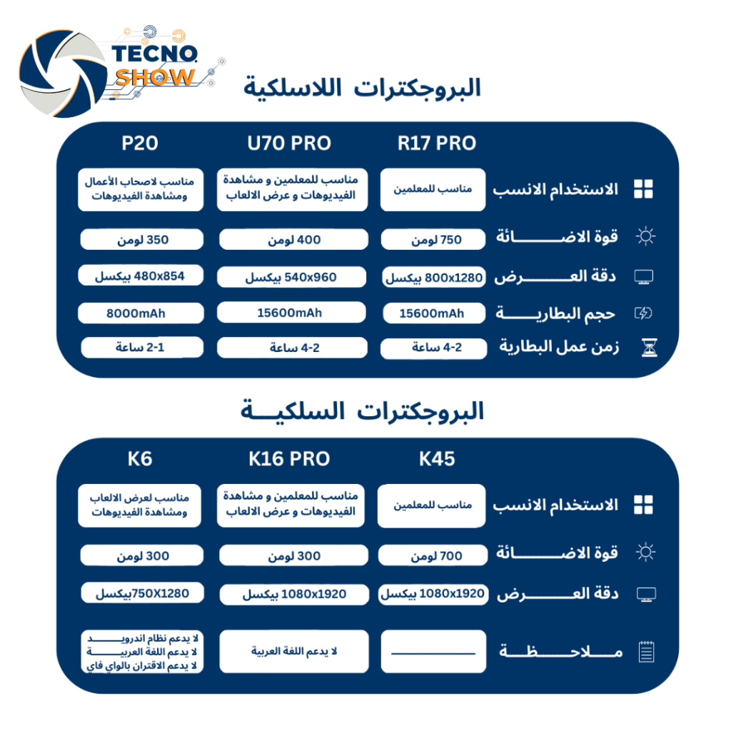 في الصورة أدناه أهم الفروقات بين البروجكترات